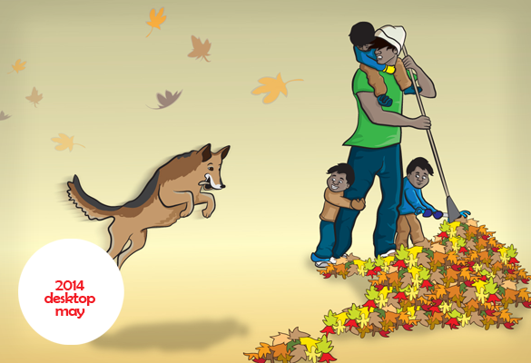 Desktop versions of the print calendar in six sizes – click to open, right-click to save to your computer. Haratua – May2014. Sweeping leaves. 16:9 1920×1080 1600×900 1280×720 4:3 1600×1200 1280×960 5:4 1280×1024